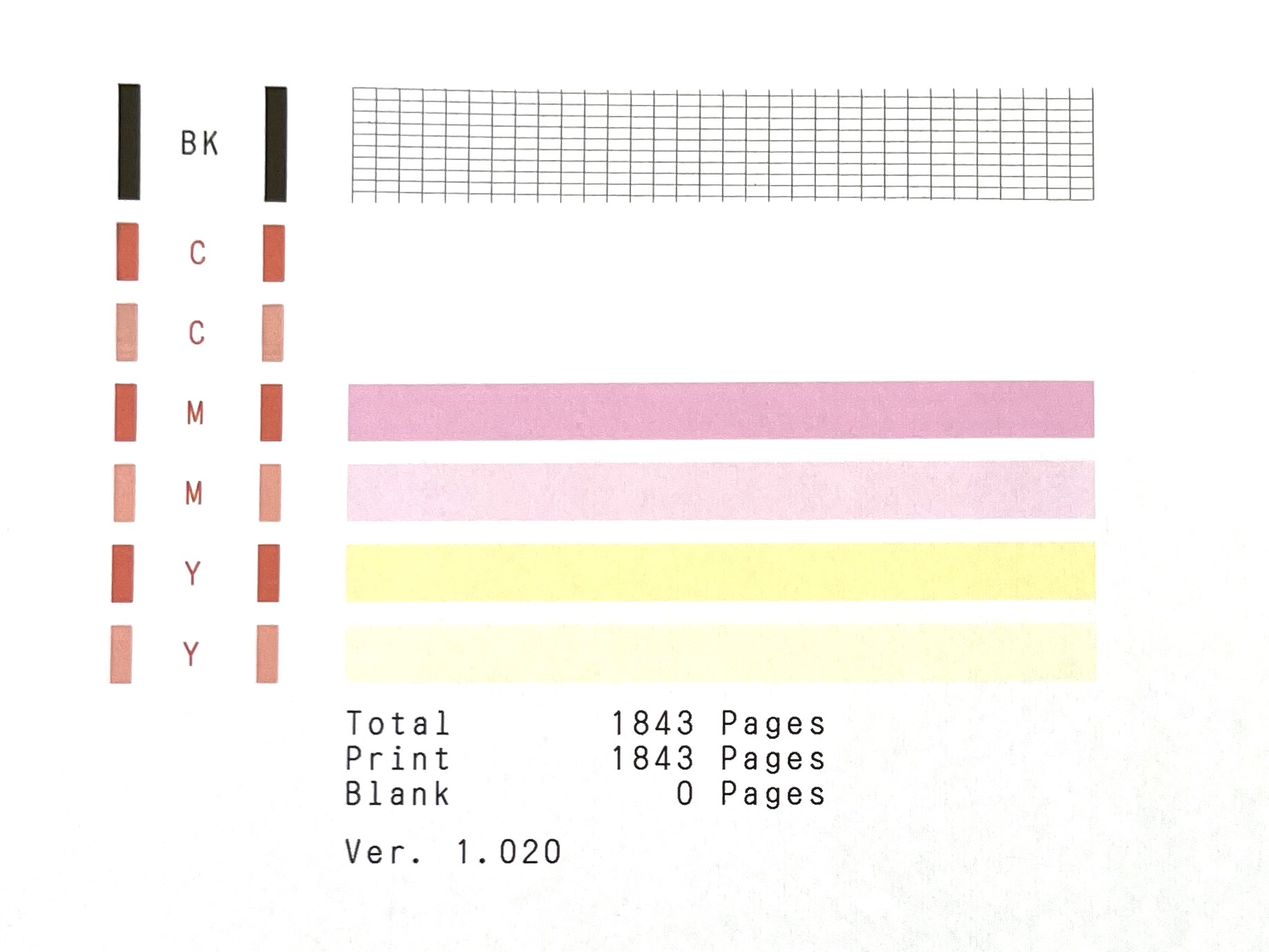 ⑦再度ノズルチェックパターンを印刷し、印刷状態を確認してください。