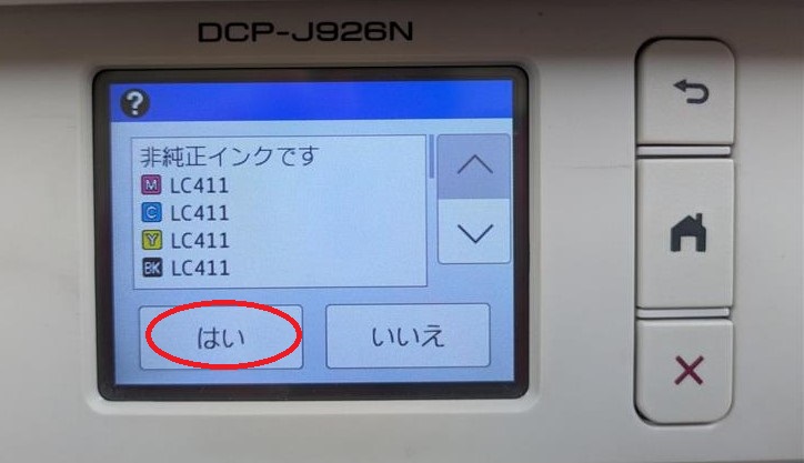 【B3111・3117・3119・411・412シリーズ】インクを交換したら「非純正インク」と表示されます