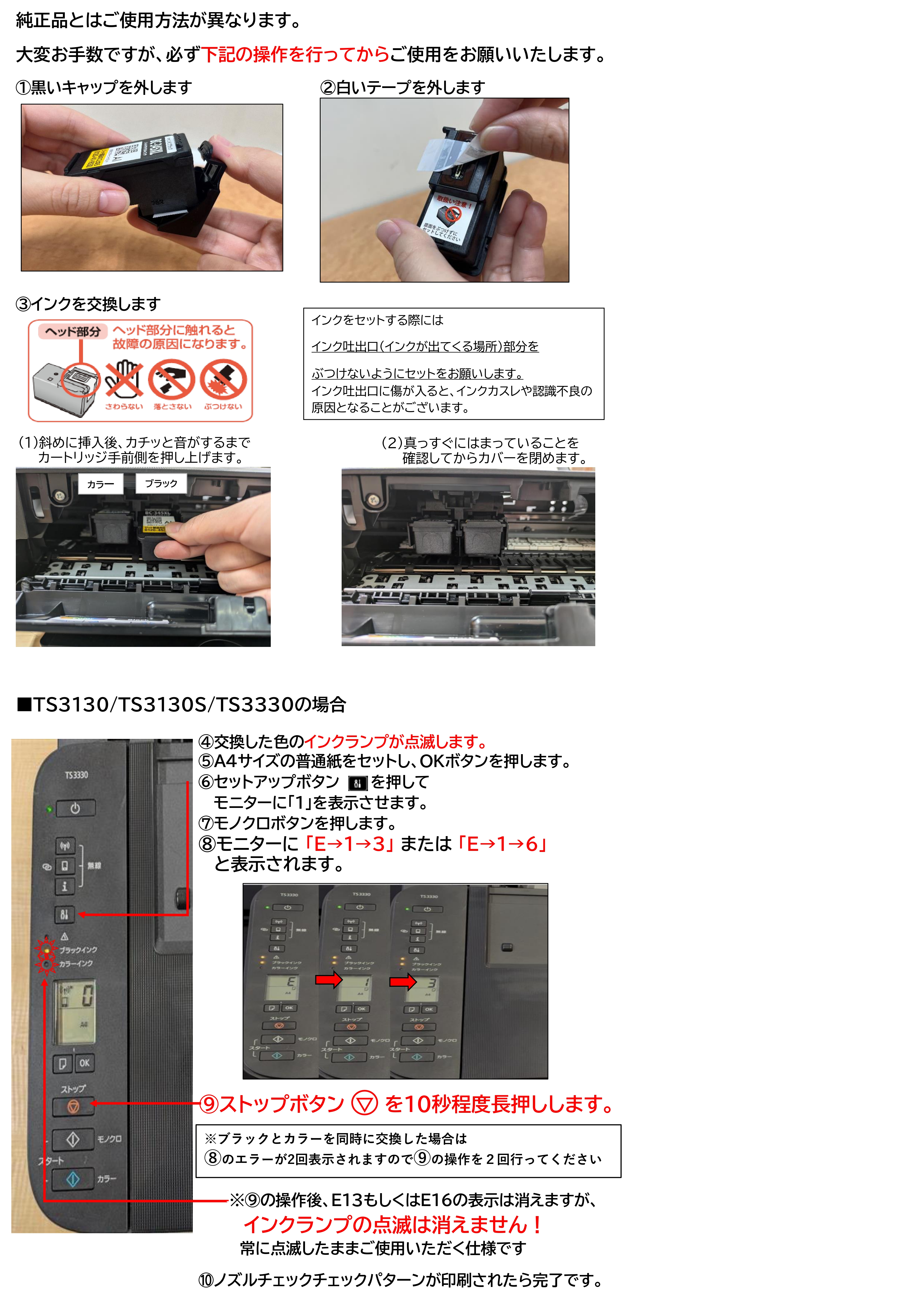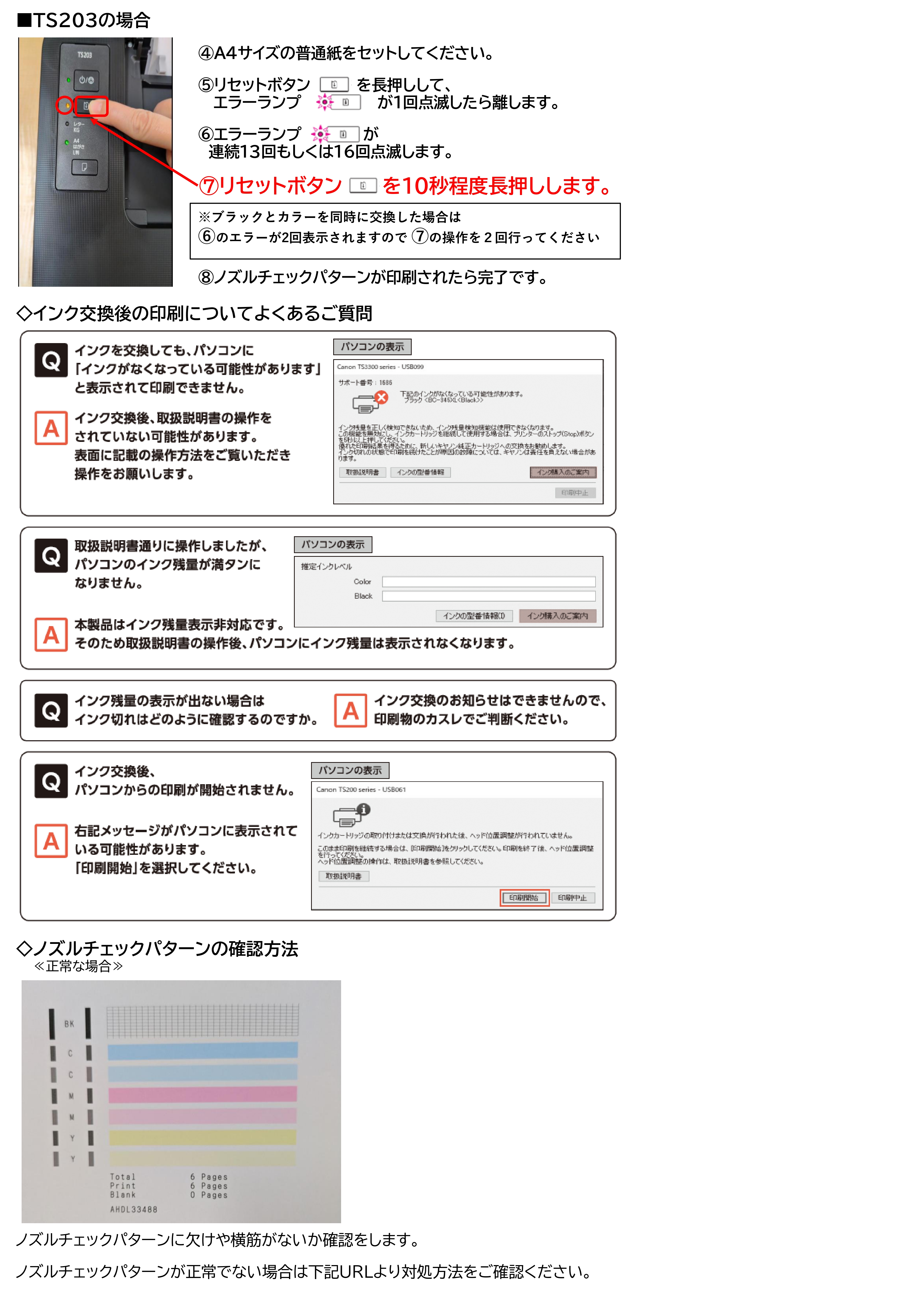 【C345/C346シリーズ】を交換したのに「インクが無い」とエラーが出て使えません。(TS3130/TS3130S/TS3330/TS203をご使用の場合)