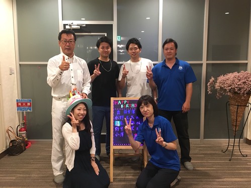 『お誕生日会を開いていただきありがとうございます。他部署の方々といろんなお話ができてとても楽しかったです。また、社長をはじめ皆さんが夢や目標に向かって前向きな姿勢で頑張っていることは自分の励みにもなりますので、自分も今まで以上に頑張らないといけないと思いました。これからは感謝の気持ちを忘れずに現状に満足せず責任感を持ってまた会社の成長と共に自分も成長ができるように日々勉強して全力で行動します。ありがとうございました。』