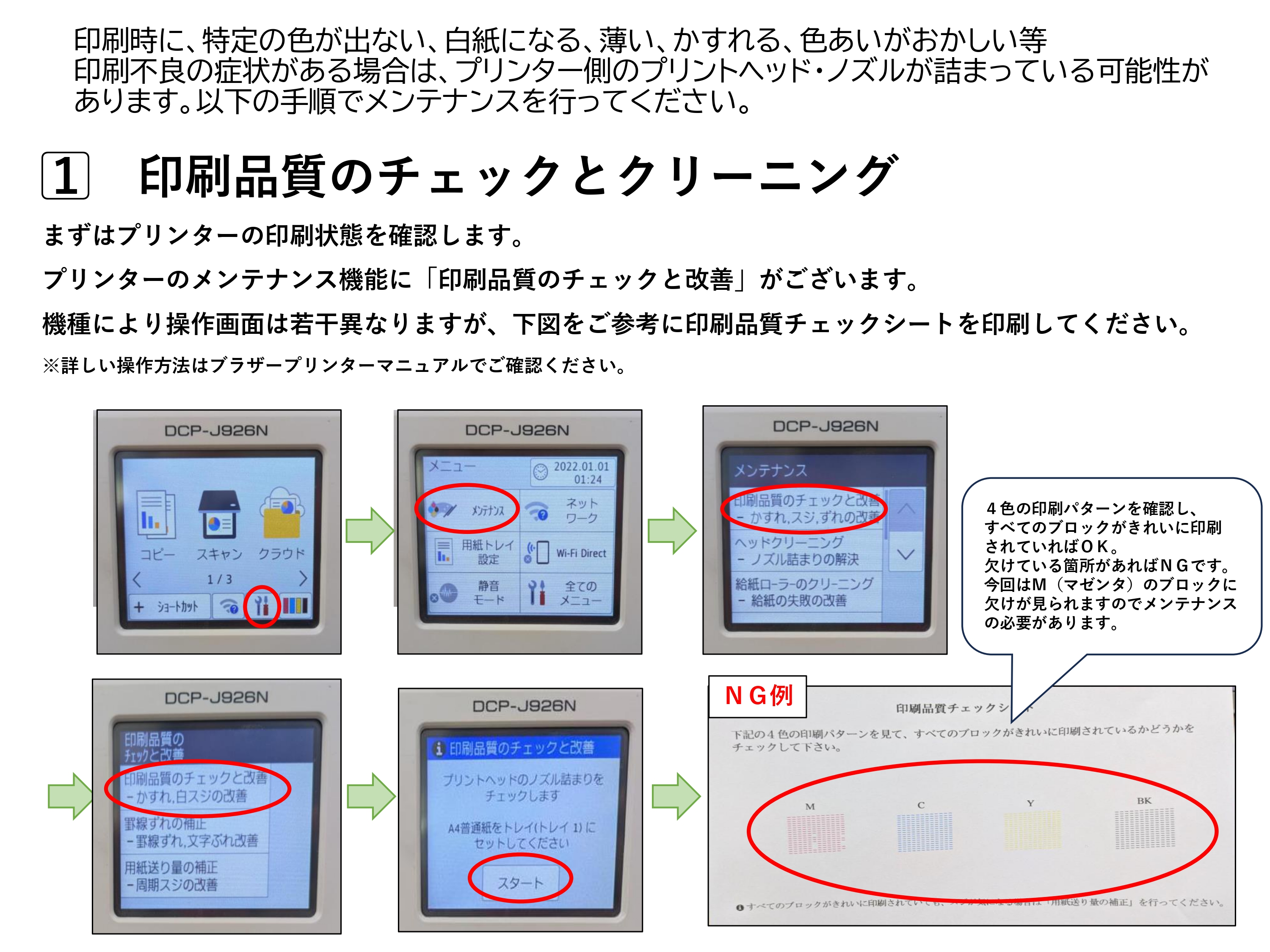 【ブラザー家庭用プリンター限定】印刷時にインクがカスレる・白紙になる・色あいがおかしい。