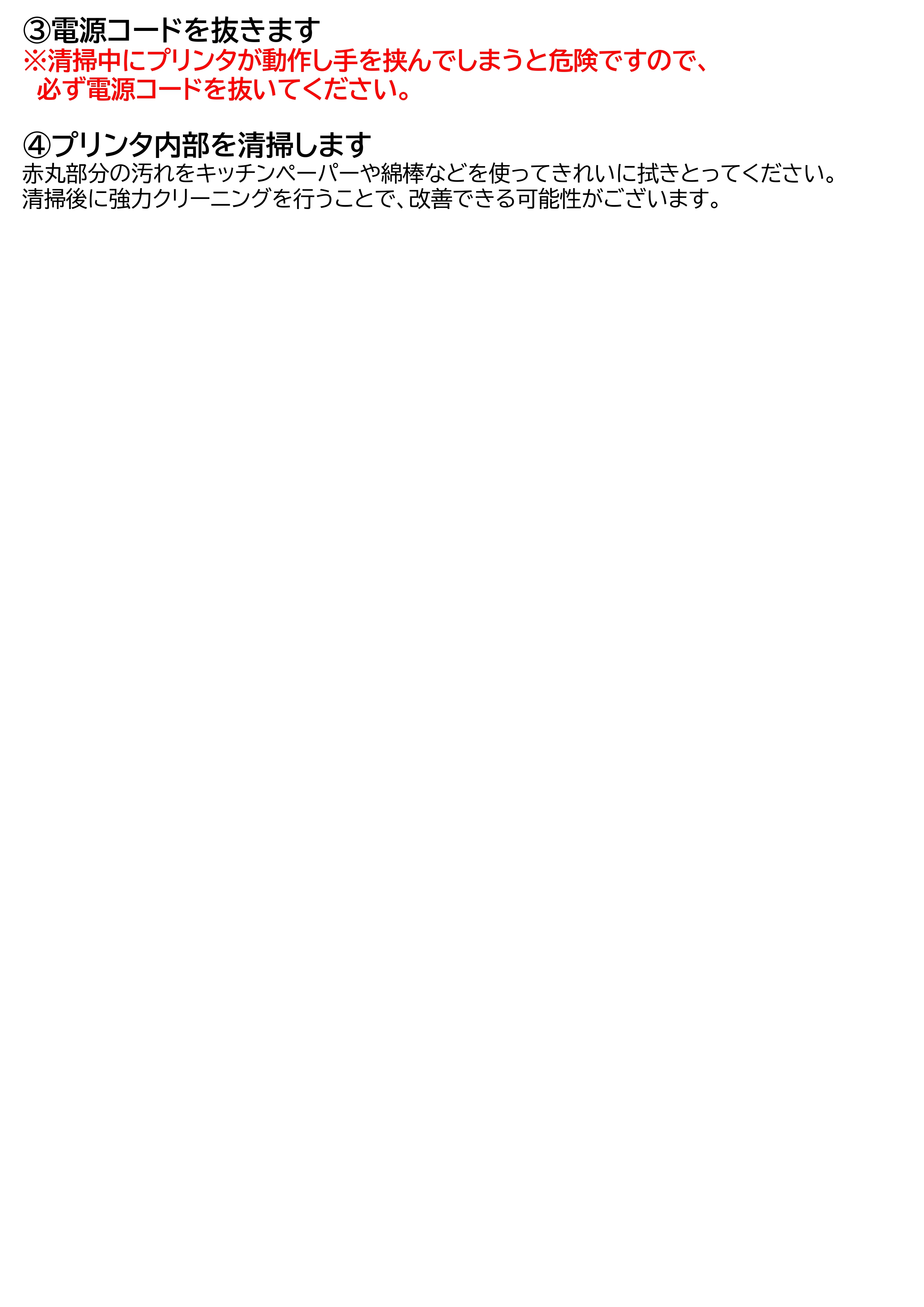 考えられる可能性の一つとしてプリンタの内部に溜まっているインク汚れが、